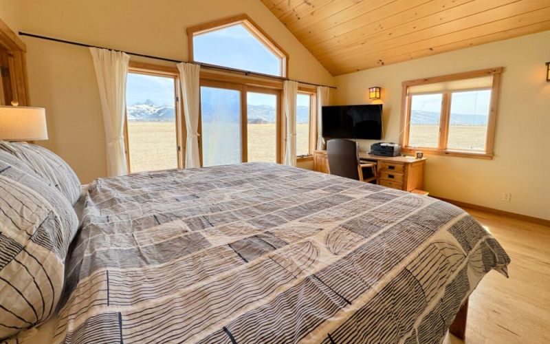 Wake up to stunning views of the Tetons in this beautiful 3-bedroom, 2-bath home. Enjoy vaulted ceilings, a stone fireplace, beautiful hardwood finishes, and floor-to-ceiling windows that flood the space with light. Set on 5 acres, the house is peaceful, private, and just minutes from downtown Driggs and Grand Targhee Resort. Perfect for anyone making a mountain getaway!